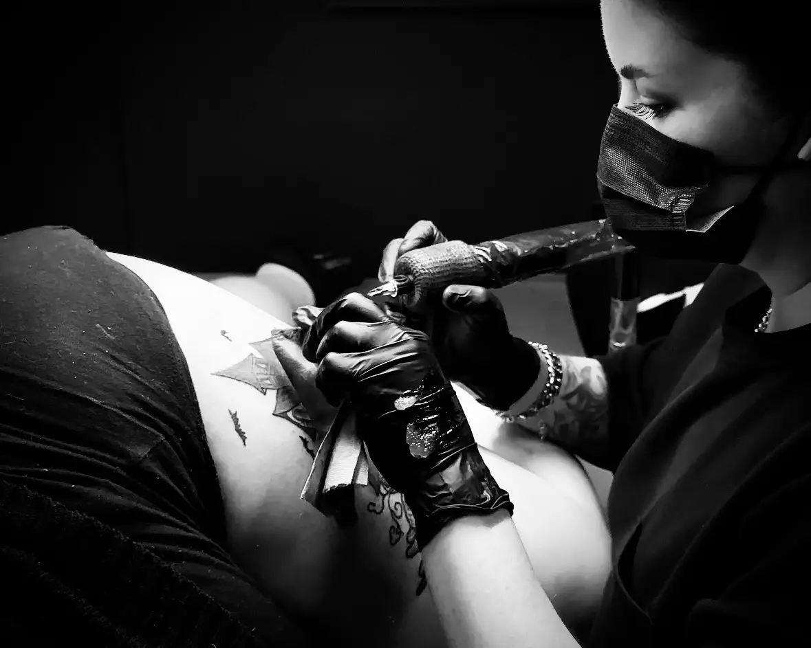 Tatoueuse basée à Montréal, je me spécialise en néotraditionnel et blackwork illustratif haut de gamme. Ayant toujours produit un art d’inspiration sombre et dramatique, je crée des tatouages sur mesure à forte identité visuelle, caractérisés par des lignes affirmées, des contrastes puissants et une esthétique intemporelle. Chaque projet est conçu comme une œuvre unique, avec une attention particulière portée au symbolisme, à la composition et à la qualité d’exécution.